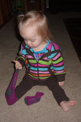 The other day I was trying to find her socks after her nap. Couldn't find them anywhere, and I thought she must have tossed them behind her bed.