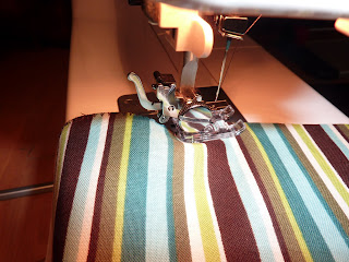 In the picture: The tunnel of the first (striped fabric) piece is at the top of the picture,